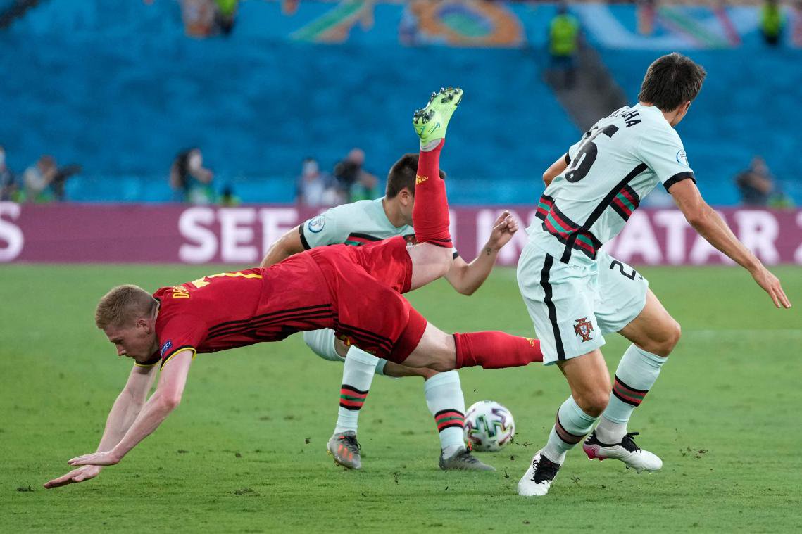 Kevin de bruyne, victime d'une torsion d'une cheville, a été contraint de céder sa place sur blessure à la 48e minute de la rencontre de huitième de finale de l'euro entre la belgique et le portugal.